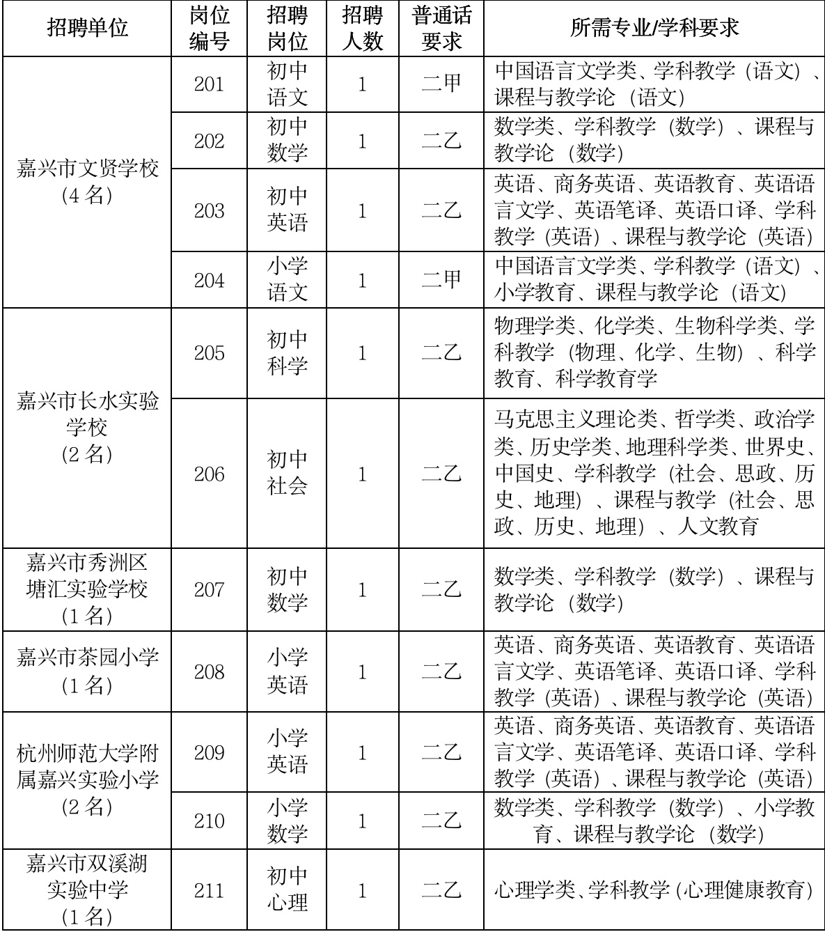 (六)須具備招聘崗位所需的其他條件,詳見(jiàn)《2024年嘉興經(jīng)開(kāi)區(qū)公開(kāi)招聘事業(yè)編制教師計(jì)劃及崗位要求表》。