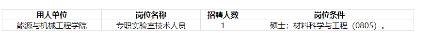 專職實驗室技術(shù)人員計劃招聘1人,為專業(yè)技術(shù)崗,應(yīng)屆畢業(yè)生且年齡在26周歲以下(1997年7月1日以后出生)。學(xué)士學(xué)位所在專業(yè)具有碩士學(xué)位授予權(quán)且碩士學(xué)位所在學(xué)校具有博士學(xué)位授予權(quán)。錄用后需在本工作崗位服務(wù)至少6年。