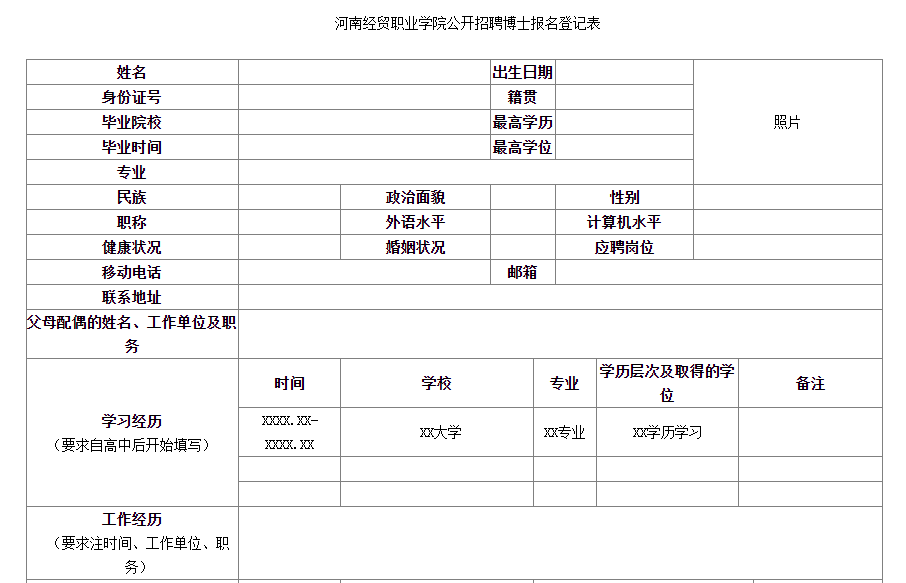 ?。?)河南經(jīng)貿(mào)職業(yè)學(xué)院2024年公開招聘博士研究生報名登記表(見附件);