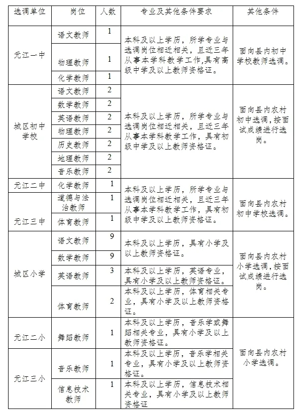 元江縣教育體育局2024年公開選調(diào)縣內(nèi)城區(qū)學(xué)校教師公告