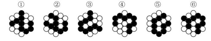 【點(diǎn)撥】本題考查的是“黑白球”與實(shí)體信息之間的對應(yīng)關(guān)系,屬于一種特殊的規(guī)律考查。因此,各位考生還需要注意“黑白塊”或“黑白球”的創(chuàng)新考查。