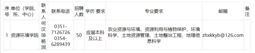 山西農(nóng)業(yè)大學(xué)資源環(huán)境學(xué)院2024年公開(kāi)招聘科研助理崗位信息表