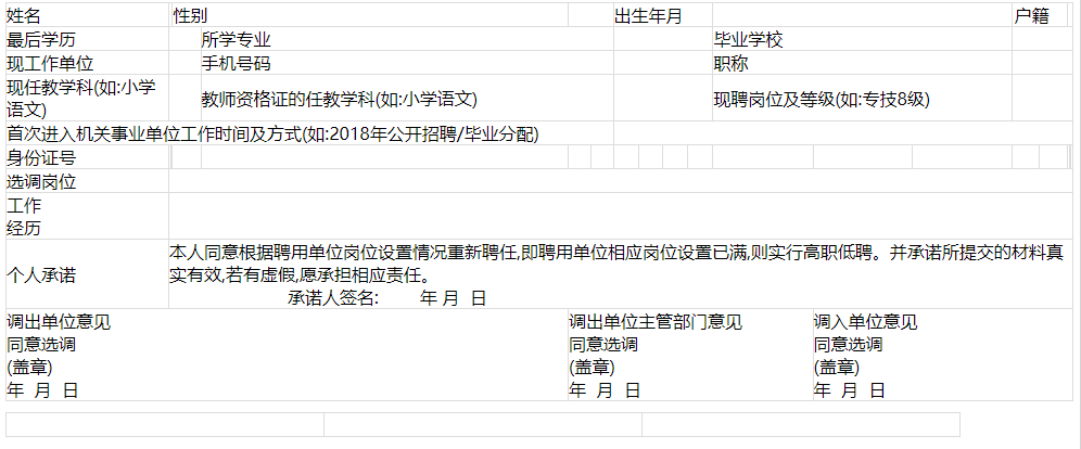 2.2024年德清縣公開(kāi)選調(diào)縣外在編教師報(bào)名表