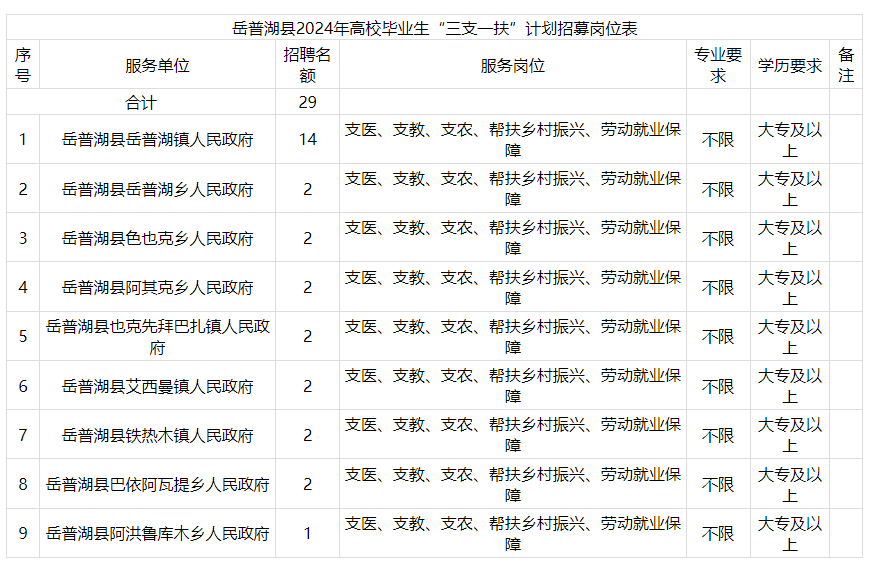 (三)服務(wù)崗位:岳普湖縣各鄉(xiāng)鎮(zhèn)基層單位從事支教、支農(nóng)、支醫(yī)、幫扶鄉(xiāng)村振興等工作。