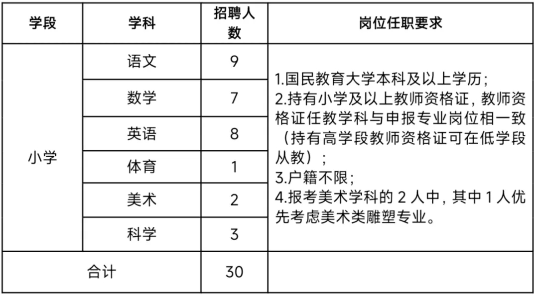 為進(jìn)一步加強(qiáng)師資隊(duì)伍建設(shè),優(yōu)化隊(duì)伍結(jié)構(gòu),促進(jìn)教育均衡、高質(zhì)量發(fā)展,擬公開(kāi)招聘教師30名?,F(xiàn)將有關(guān)事宜公告如下: