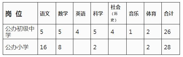 本次計(jì)劃招聘學(xué)科教師共54名,具體見(jiàn)下表: