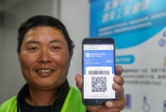 來(lái)自安徽的農(nóng)民工王亞平展示已激活的醫(yī)保電子憑證(2020年10月20日攝)。新華社記者丁汀 攝