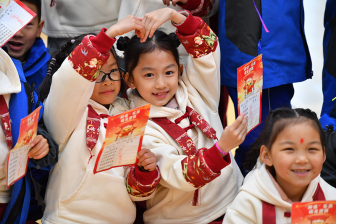 在湖南省長(zhǎng)沙市天心區(qū)的湖南師大附中雙語(yǔ)實(shí)驗(yàn)學(xué)校,一年級(jí)學(xué)生在趣味闖關(guān)活動(dòng)中展示自己的闖關(guān)卡片(2024年1月18日攝)。新華社記者陳澤國(guó) 攝