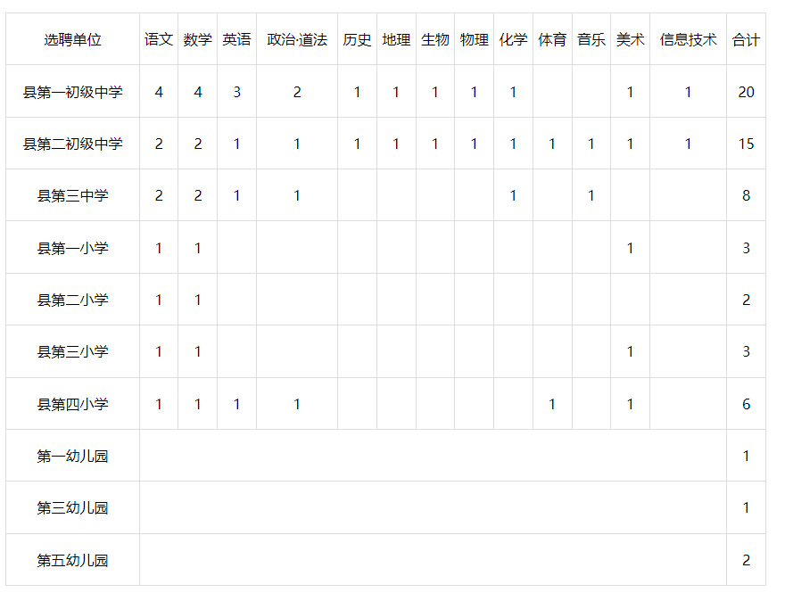 為全面落實全縣教育高質(zhì)量發(fā)展大會精神,結(jié)合“縣管校聘”,根據(jù)城區(qū)學(xué)校教師不足的實際,決定在全縣在編在崗公辦教師中為城區(qū)部分學(xué)校選聘緊缺教師91名,其中從城關(guān)街道、色河鋪鎮(zhèn)各單設(shè)選聘15名,現(xiàn)公告如下: