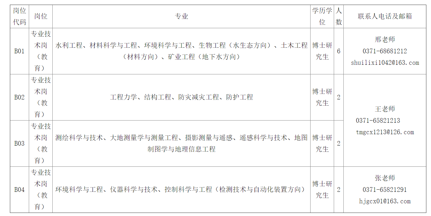 6.崗位所需的專業(yè)和其他條件詳見《河南水利與環(huán)境職業(yè)學(xué)院2024年公開招聘博士研究生一覽表》。