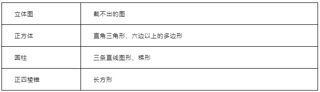 常見(jiàn)截不出的立體截面對(duì)應(yīng)表: