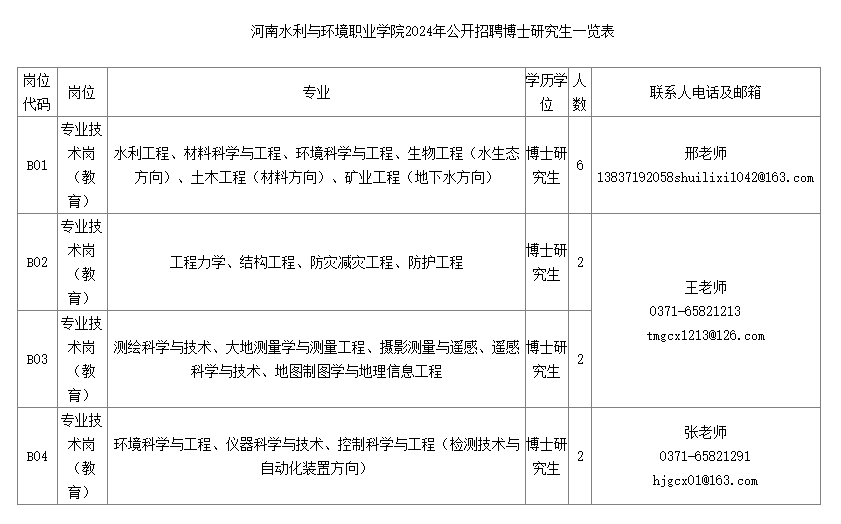 詳見(jiàn)附表《河南水利與環(huán)境職業(yè)學(xué)院2024年公開招聘博士研究生一覽表》。