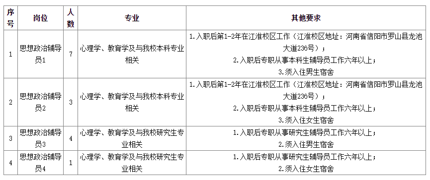 根據(jù)《河南省事業(yè)單位公開招聘工作規(guī)程》(豫人社〔2015〕55號)規(guī)定,我校擬面向社會公開招聘本科生專職輔導員10名、研究生專職輔導員5名。結(jié)合我校實際,制定本公開招聘方案。