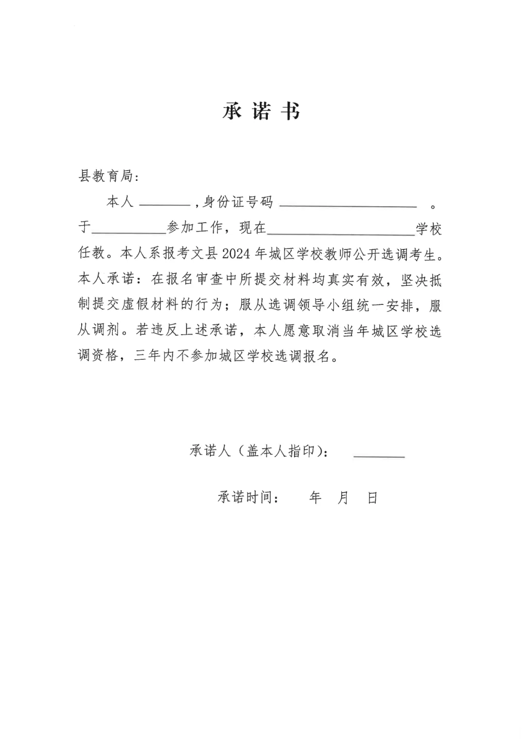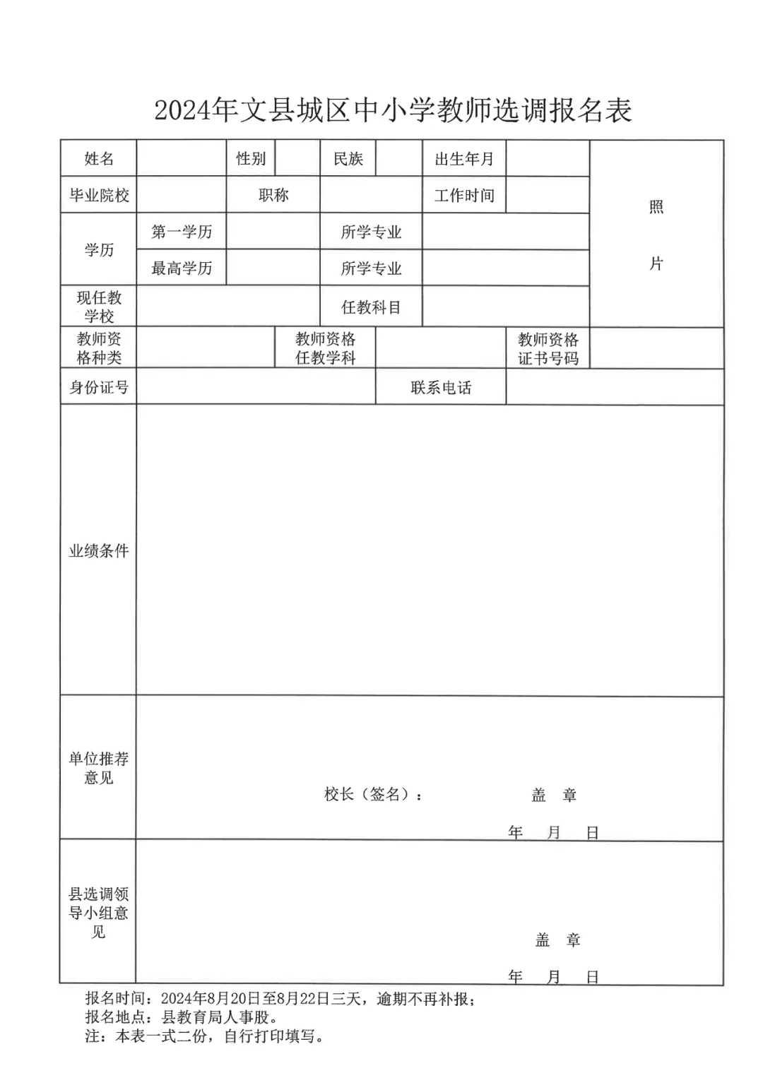 附件:1.2024年文縣城區(qū)中小學教師選調(diào)報名表