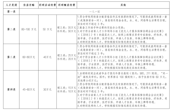 各類高層次人才除享受按國家有關(guān)規(guī)定提供的工資、保險、福利待遇外,學(xué)校還提供如下待遇: