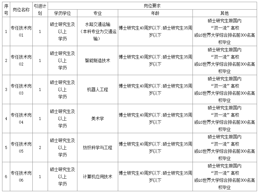 ?。ㄈ﹪?guó)內(nèi)學(xué)歷要求限國(guó)內(nèi)入選《第二輪“雙一流”建設(shè)高校及建設(shè)學(xué)科名單》中147所高校畢業(yè)的碩士及以上研究生。國(guó)外學(xué)歷限QS世界大學(xué)綜合排名前300名高校畢業(yè)的碩士及以上研究生(QS世界大學(xué)排名指畢業(yè)當(dāng)年最新排名)。