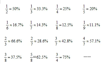 這里要申明的一點(diǎn)是,這個(gè)方法的運(yùn)用需要先記住一些常用的分?jǐn)?shù)對(duì)應(yīng)關(guān)系: