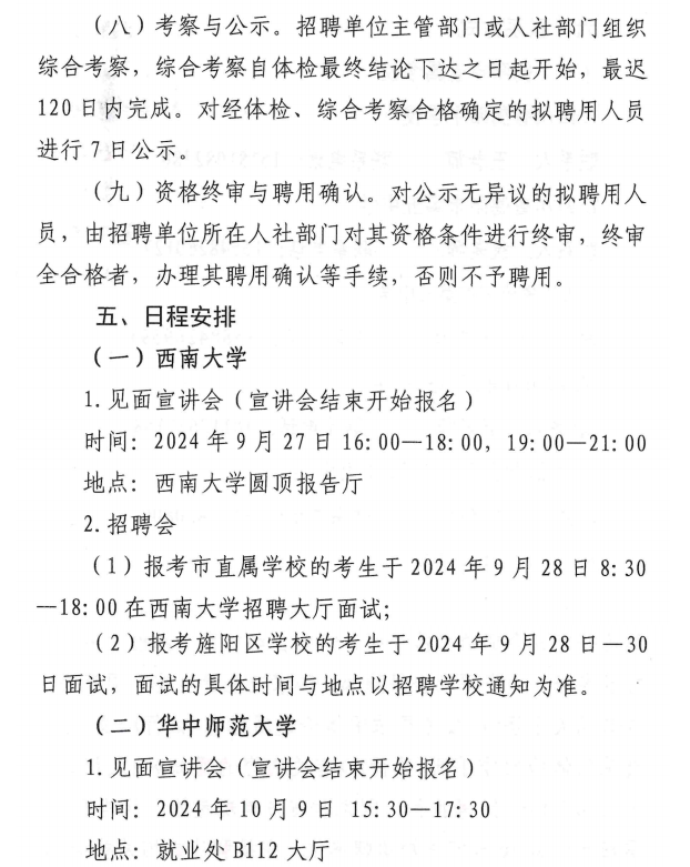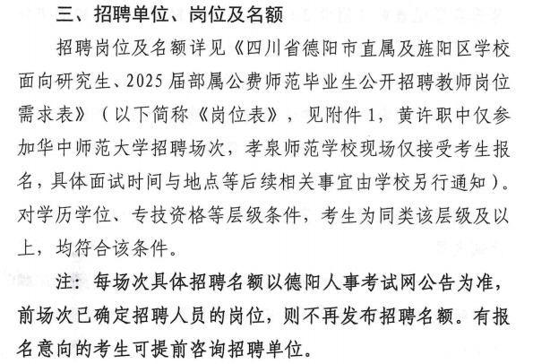 四川省德陽市直屬及旌陽區(qū)學(xué)校面向研究生、2025屆部屬公費(fèi)師范畢業(yè)生公開考核招聘教師的公告(西南大學(xué)、華中師范大學(xué)專場)