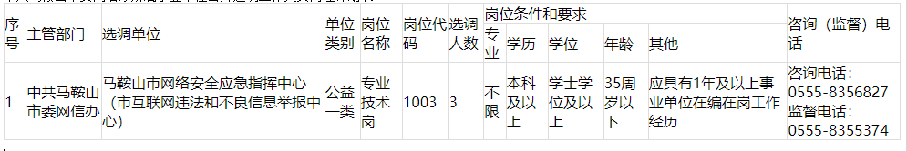 附件:中共馬鞍山市委網(wǎng)信辦所屬事業(yè)單位公開選調(diào)工作人員崗位計劃表