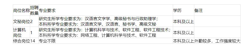 2.報考人員應保證通訊工具暢通,因自身原因或無法聯(lián)系導致未能參加招聘程序的,視為放棄。