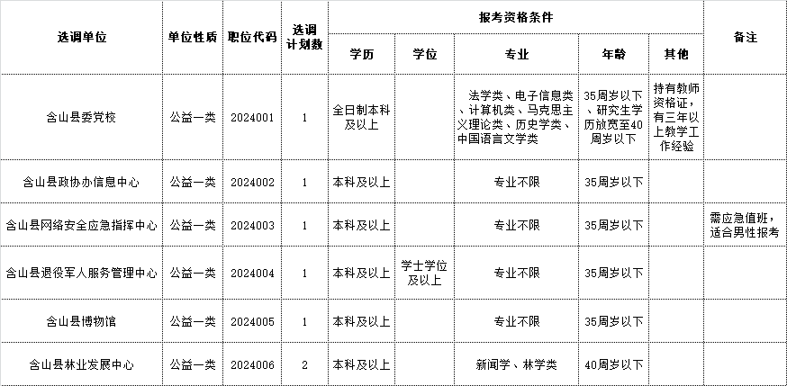 附件1:2024年含山縣部分事業(yè)單位公開(kāi)選調(diào)工作人員崗位表