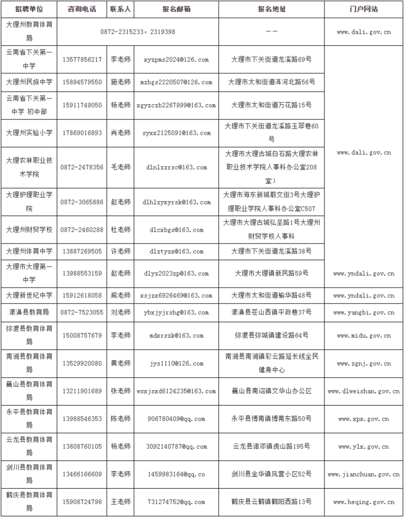 ?。ㄋ模┛h市招聘工作進展情況、有關(guān)事宜在縣市人民政府網(wǎng)站查詢;州級招聘單位工作進展情況、有關(guān)事宜在大理州人民政府門戶網(wǎng)站查詢。報考人員因查看其他渠道的錯誤信息造成的報考失誤,由報考人員負責。
