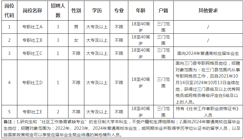 1.2024年三門縣專職社區(qū)工作者招聘計(jì)劃崗位一覽表