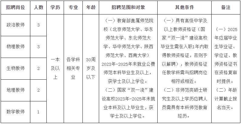 云南省保山第一中學(xué)2025年校園公開招聘教師5個(gè)崗位共11人,具體崗位如下: