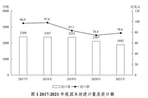 由圖1折線圖可知,2018年和2021年我國木材進口額是同比增加的,2019年和2020年是同比減少的,則2018年和2021年我國木材進口額的同比增量均大于2019年和2020年,折線圖走勢應該為兩邊高中間低,只有C項符合。故本題選C。