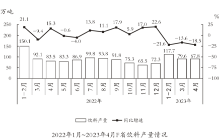 問:以下柱狀圖反映了2022年哪一時間段內(nèi),F(xiàn)省飲料產(chǎn)量環(huán)比增量的變化趨勢(橫軸位置代表0)( )?