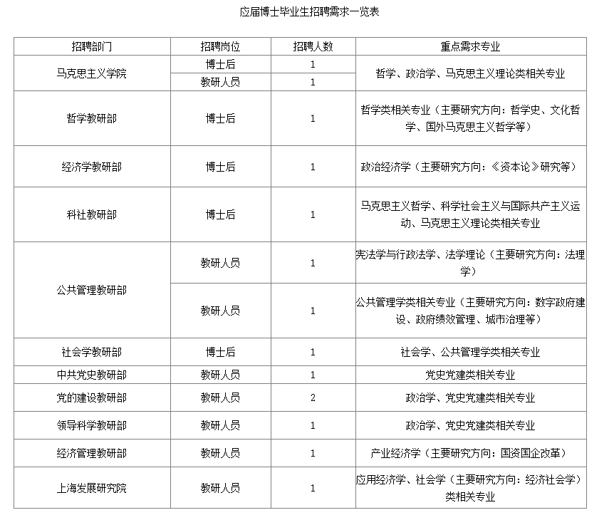 中共上海市委黨校(上海行政學(xué)院)公開招聘高層次人才和應(yīng)屆博士畢業(yè)生公告
