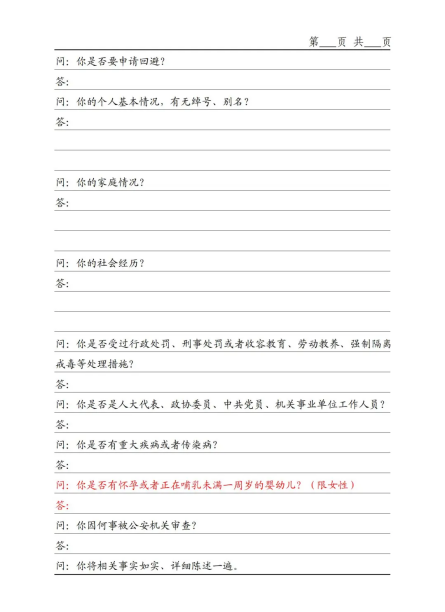 【個(gè)人情況】實(shí)務(wù)中,對(duì)于筆錄頭已載明“被訊問(wèn)人姓名、性別等”相關(guān)事項(xiàng)時(shí)應(yīng)否在訊問(wèn)中再次問(wèn)明個(gè)人情況頗有爭(zhēng)議。有不少辦案人員遺漏此問(wèn),但有觀點(diǎn)認(rèn)為“載明≠問(wèn)明”,因此建議在訊問(wèn)過(guò)程中仍需再次核對(duì)被訊問(wèn)人相關(guān)基本信息,包括有無(wú)別名、化名、綽號(hào)等。
