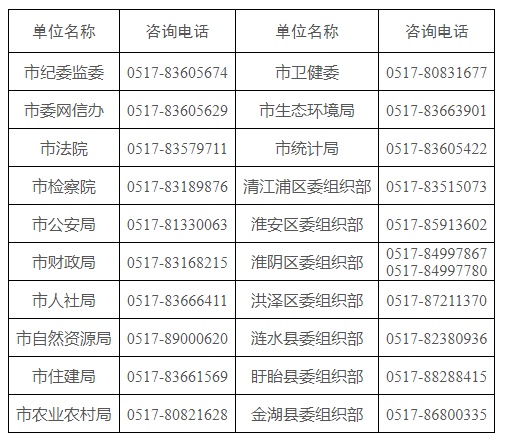 各招錄機(jī)關(guān)的招考人數(shù)、具體職位、考試類(lèi)別、資格條件等信息可通過(guò)以下網(wǎng)站查詢(xún):淮安黨建網(wǎng)(zzb.huaian.gov.cn)“招錄招聘”專(zhuān)欄、淮安市人力資源和社會(huì)保障局門(mén)戶(hù)網(wǎng)站“人事考試”專(zhuān)欄(http://rsj.huaian.gov.cn/col/4729_463783/index.html)。