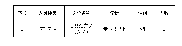 因學校實際用人需求,現(xiàn)招聘總務處文員(采購崗)1名。