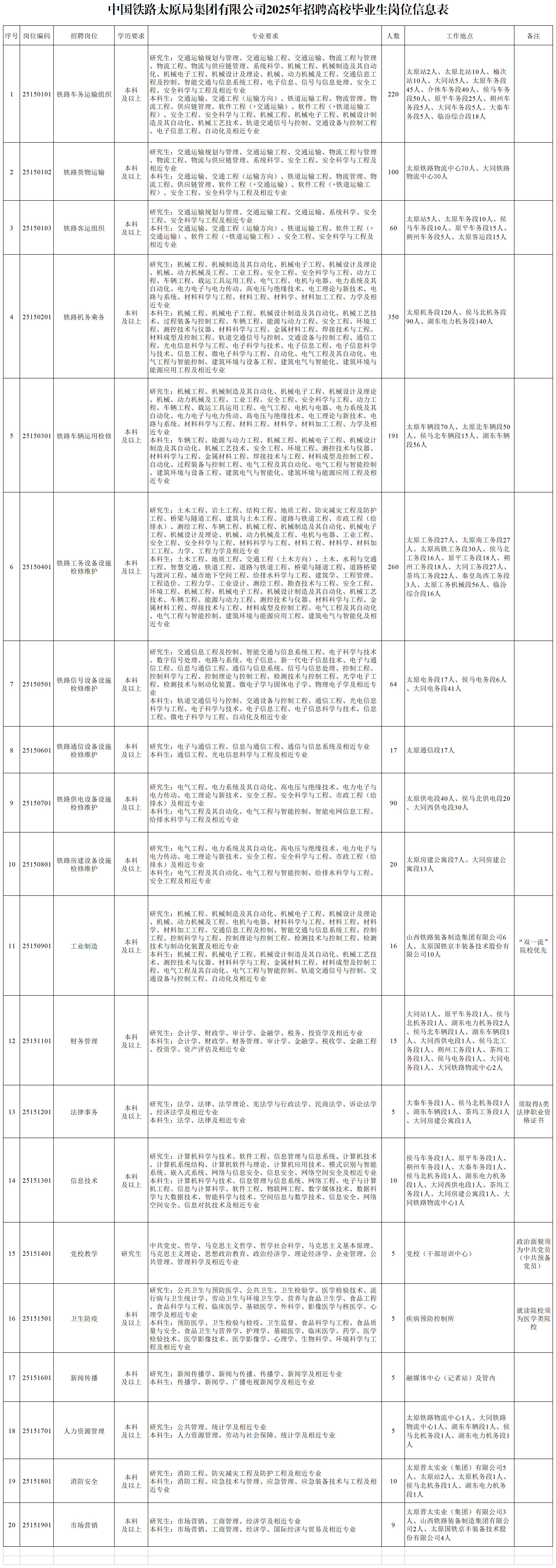 中國鐵路太原局集團(tuán)有限公司2025年招聘高校畢業(yè)生公告(一)