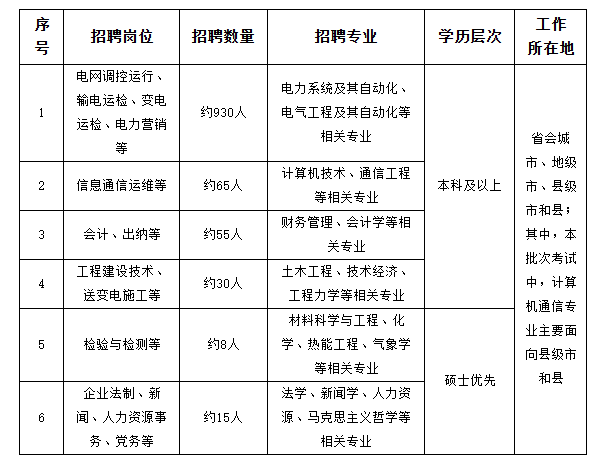 說明:招聘專業(yè)均指主修專業(yè),不包含輔修專業(yè)及第二學(xué)位。最終招聘數(shù)量將根據(jù)上級單位核定情況相應(yīng)調(diào)整。上述招聘數(shù)量含提前批次校園招聘數(shù)量。