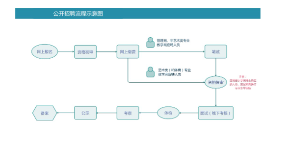 本次公開(kāi)招聘按照發(fā)布公告、網(wǎng)上報(bào)名、資格初審、繳費(fèi)、筆試(部分崗位無(wú)筆試)、資格復(fù)審、面試(或線下考核)、體檢、考察、公示、備案等程序進(jìn)行。相關(guān)工作通知或公告將在內(nèi)蒙古藝術(shù)學(xué)院人事處官網(wǎng)(網(wǎng)址https://rsc.imac.edu.cn)、內(nèi)蒙古藝術(shù)學(xué)院微信公眾號(hào)和內(nèi)蒙古人事考試網(wǎng)(網(wǎng)址http://www.impta.com.cn)上發(fā)布。招聘流程示意如下: