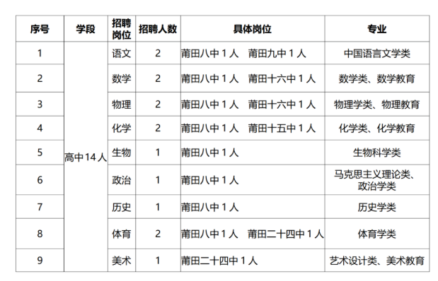 莆田市荔城區(qū)公開(kāi)考核招聘2025年新任教師方案