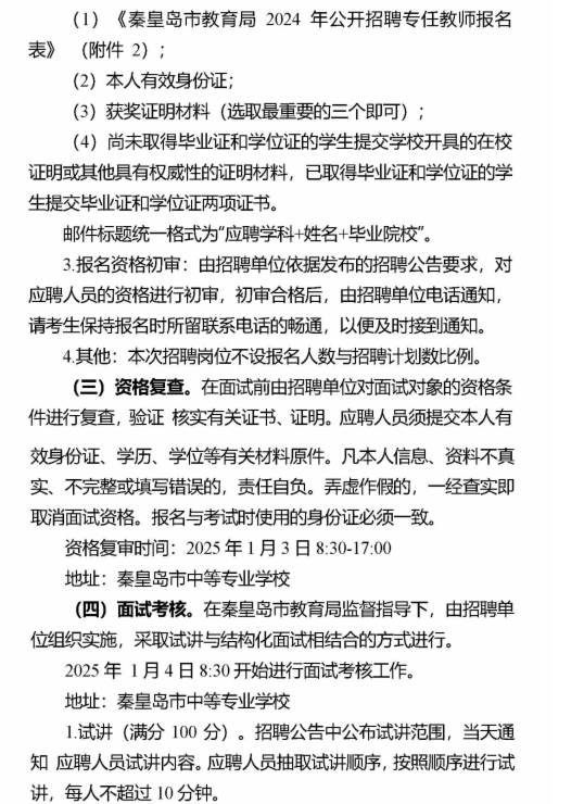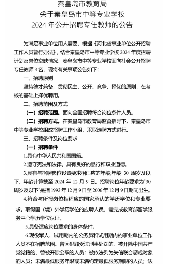 2024年河北秦皇島市中等專業(yè)學(xué)校招聘專任教師3人公告
