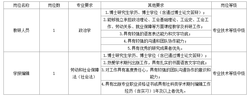 上海工會(huì)管理職業(yè)學(xué)院是上海市總工會(huì)主辦的工會(huì)干部培訓(xùn)院校,主要承擔(dān)干部教育培訓(xùn)、工會(huì)理論研究、工會(huì)學(xué)術(shù)交流等職責(zé)。因?qū)W院發(fā)展需要,根據(jù)《上海市事業(yè)單位公開(kāi)招聘人員辦法》(滬人社規(guī)〔2019〕15號(hào)),結(jié)合學(xué)院建設(shè)和發(fā)展的需要,按照公開(kāi)、公平、競(jìng)爭(zhēng)、擇優(yōu)原則,面向社會(huì)公開(kāi)招聘事業(yè)單位工作人員2名。