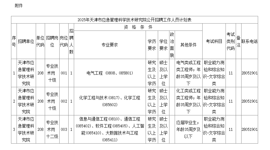 附件:2025年天津市應(yīng)急管理科學(xué)技術(shù)研究院公開招聘工作人員計(jì)劃表