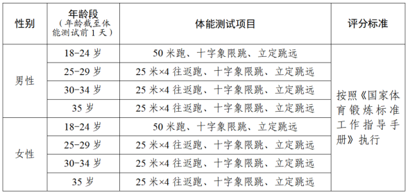 ?。ㄋ模┱?qǐng)參加體能測(cè)試的考生自帶飲用水,并結(jié)合身體情況備好相關(guān)藥品,考試當(dāng)天請(qǐng)穿著寬松衣物或運(yùn)動(dòng)衣及運(yùn)動(dòng)鞋(鞋底不得帶釘)。