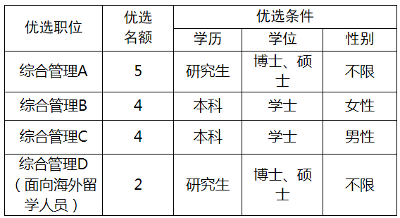 (四)后續(xù)管理。優(yōu)選的青年人才,作為機(jī)關(guān)事業(yè)單位后備人才和優(yōu)秀年輕干部重要來源,最低工作年限為5年(含試用期),由組織人社部門統(tǒng)一管理。對(duì)工作表現(xiàn)優(yōu)秀的,經(jīng)推薦優(yōu)先納入后備干部隊(duì)伍管理;博士、碩士可在編制職數(shù)空缺范圍內(nèi)優(yōu)先落實(shí)正科級(jí)、副科級(jí)職務(wù),符合公務(wù)員調(diào)任規(guī)定及有關(guān)要求的,優(yōu)先予以調(diào)任。