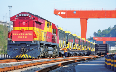 圖為2024年10月28日,裝載“貴州造”新能源客車的出口專列停靠在貴陽(yáng)國(guó)際陸港都拉營(yíng)站。新華社記者 劉續(xù)/攝