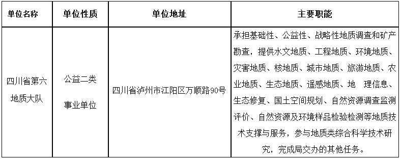 1.四川省第六地質(zhì)大隊2025年上半年公開考核招聘工作人員崗位和條件要求一覽表