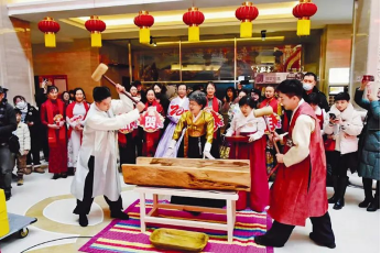 2025年1月21日,2025年“非遺賀新春——延邊過大年”系列活動(dòng)在延邊博物館啟動(dòng)?,F(xiàn)場(chǎng)設(shè)樂舞、指尖、舌尖三大板塊,展演、展示、品鑒精彩不斷,吸引眾多市民游客。圖為活動(dòng)啟動(dòng)當(dāng)日,朝鮮族做傳統(tǒng)打糕的場(chǎng)景展示。吉林省委宣傳部供圖 金由美/攝