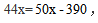 根據(jù)“總利潤比預(yù)期減少了390元”可得,