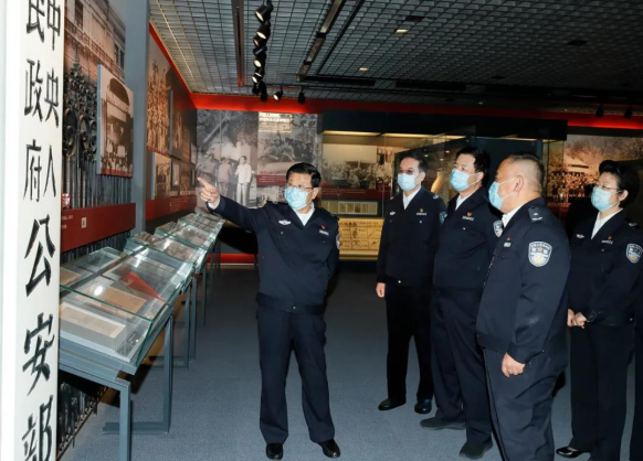 在被稱為“龍?zhí)度堋钡睦羁宿r、錢壯飛、胡底同志的照片前,在陜甘寧邊區(qū)人民政府保安處窯洞復原模型前,在中央軍委成立公安部的決定復制件前,在毛澤東同志關于確定公安工作受黨委直接領導的原則的批示展板前,在習近平總書記會見全國公安系統(tǒng)英雄模范立功集體表彰大會代表的照片前,趙克志不時駐足觀看,詳細詢問有關情況。中國警察博物館通過“初創(chuàng)和戰(zhàn)斗”“成長和發(fā)展”“改革和創(chuàng)新”三大板塊,詳細展示了人民公安在黨的領導下,在革命、建設、改革和發(fā)展的不同歷史時期的奮斗歷程。趙克志指出,人民公安誕生于紅色革命根據地,脫胎于人民軍隊,對黨忠誠是人民公安始終不變的根和魂,服務人民是人民公安始終不變的初心和使命。人民公安的光輝歷史是我們寶貴的精神財富,我們要從中汲取智慧和力量,傳承紅色基因,牢記初心使命,始終以黨的旗幟為旗幟、以黨的方向為方向、以黨的意志為意志,確保在任何時候、任何情況下都堅決聽黨話、跟黨走,在新征程上把革命先輩開創(chuàng)的偉大事業(yè)不斷推向前進。