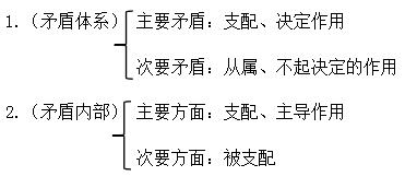 一是,主次矛盾關(guān)系原理處于復(fù)雜事物中(至少有二對(duì)矛盾組成):中心(環(huán)節(jié))、核心、關(guān)鍵、重點(diǎn)、 要(點(diǎn))害、決定作用、根本、著力點(diǎn),首要(位置)。