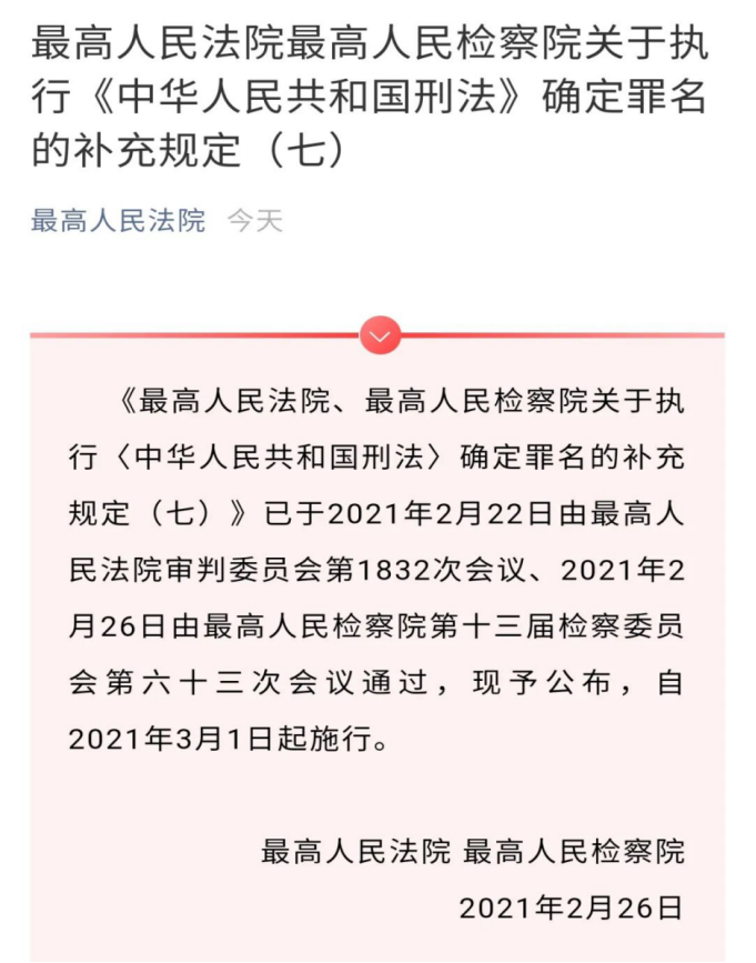 今日,兩高發(fā)布關(guān)于執(zhí)行《中華人民共和國刑法》確定罪名的補充規(guī)定(七),正式明確襲警罪!3月1日起正式施行。